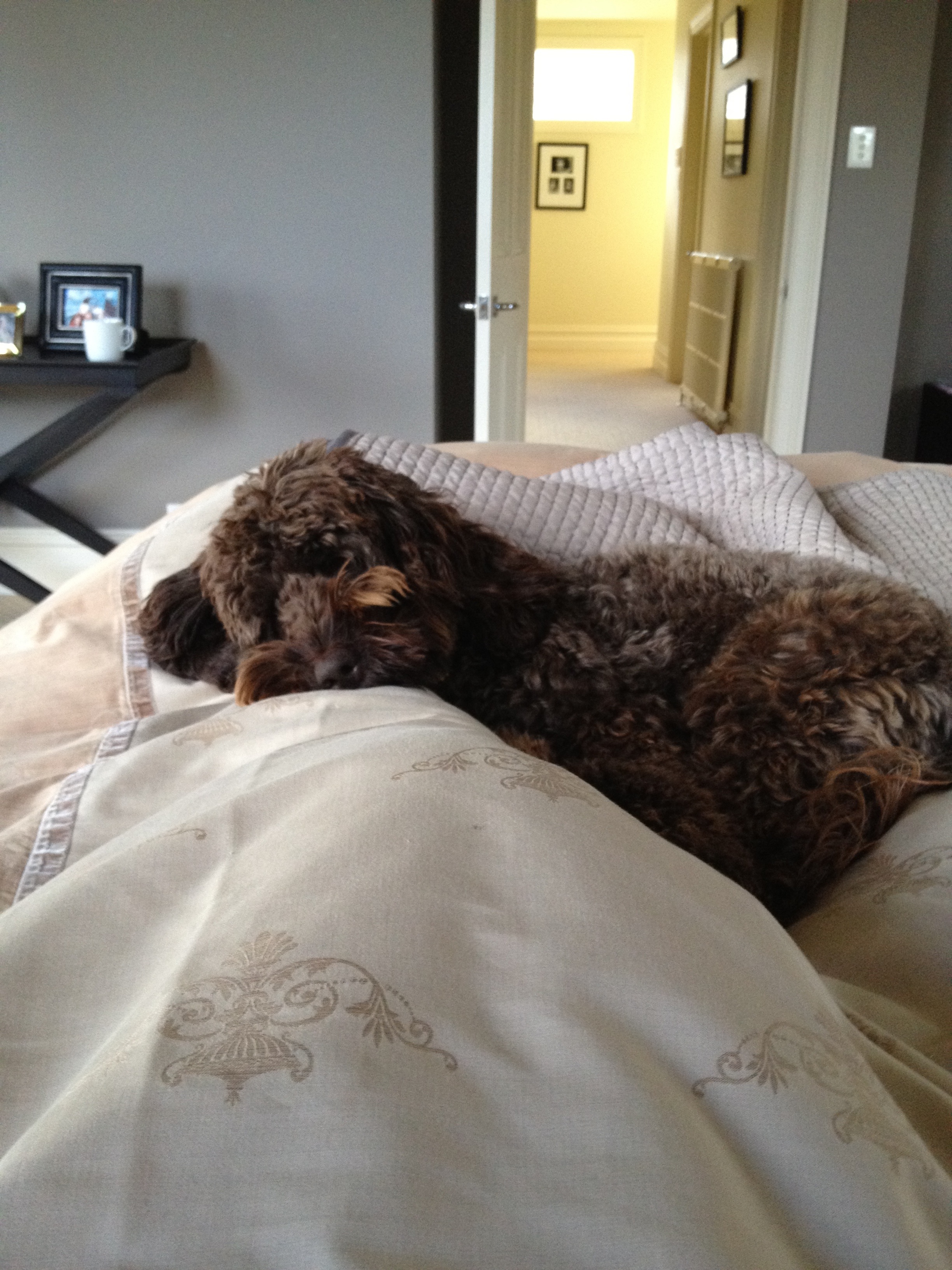 The dog and I have basically slept all day. I wake to find food and fluid by my bed. Petra and the girls have been out all day at breakfast, sport, various catch ups and now an early dinner.